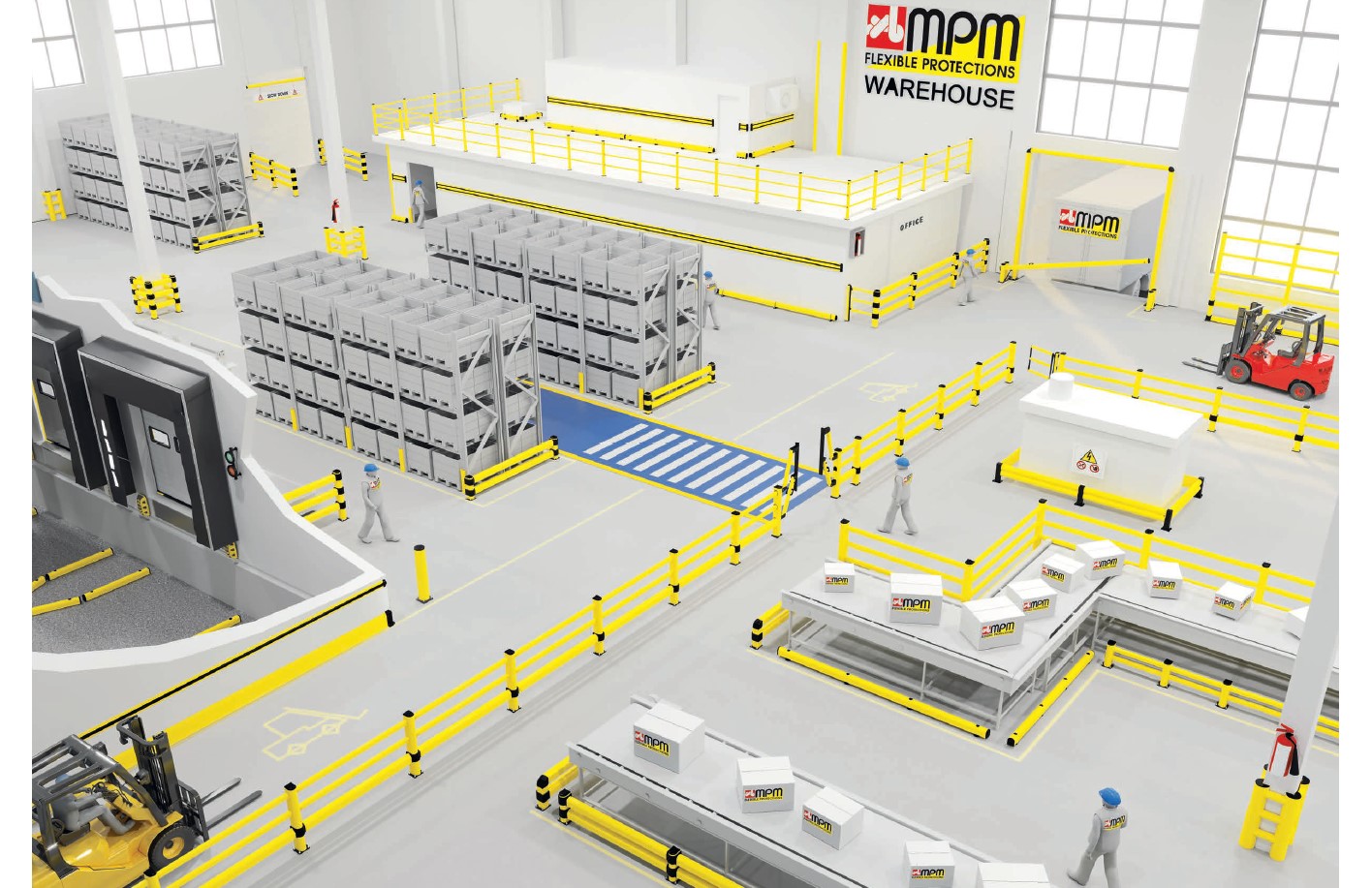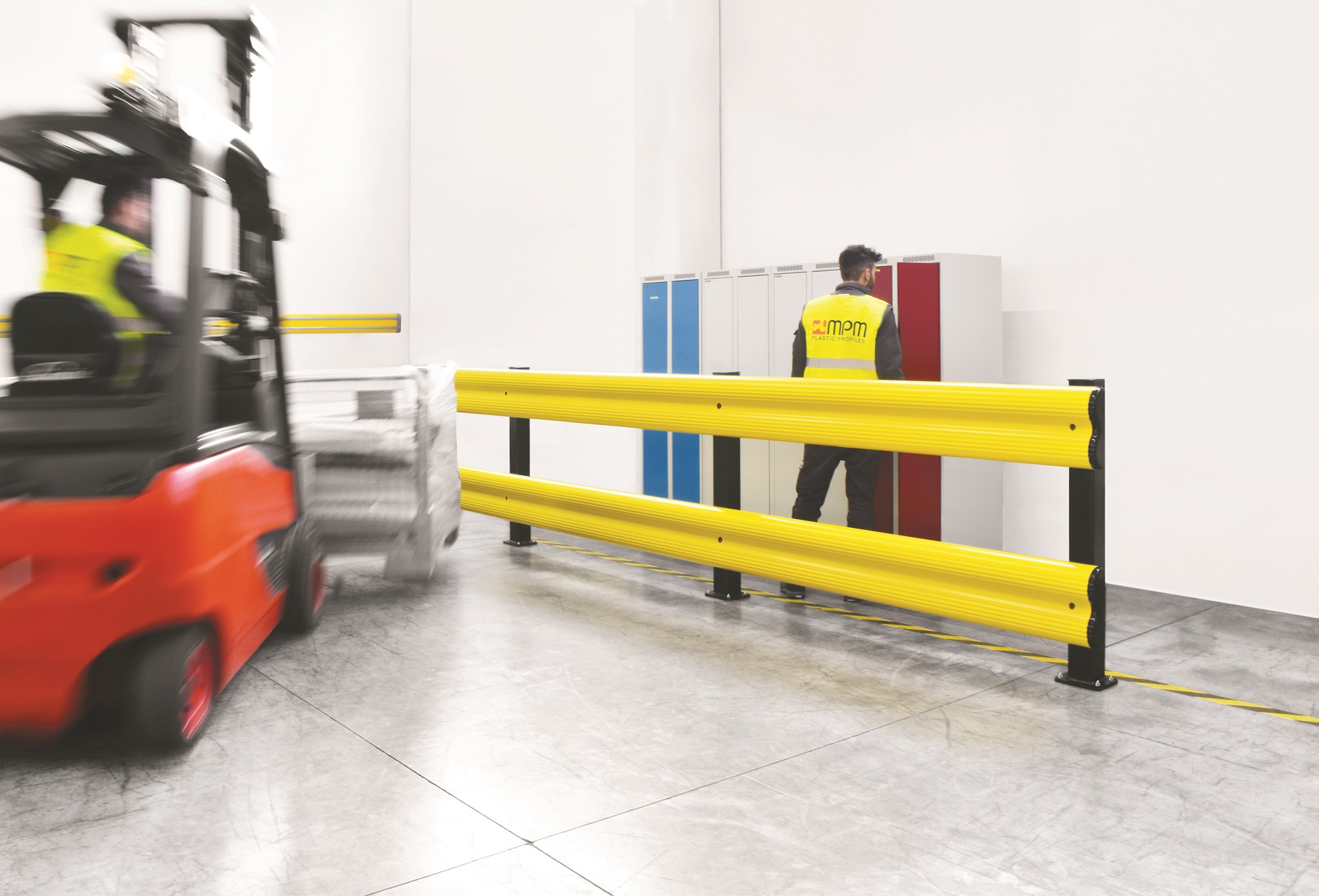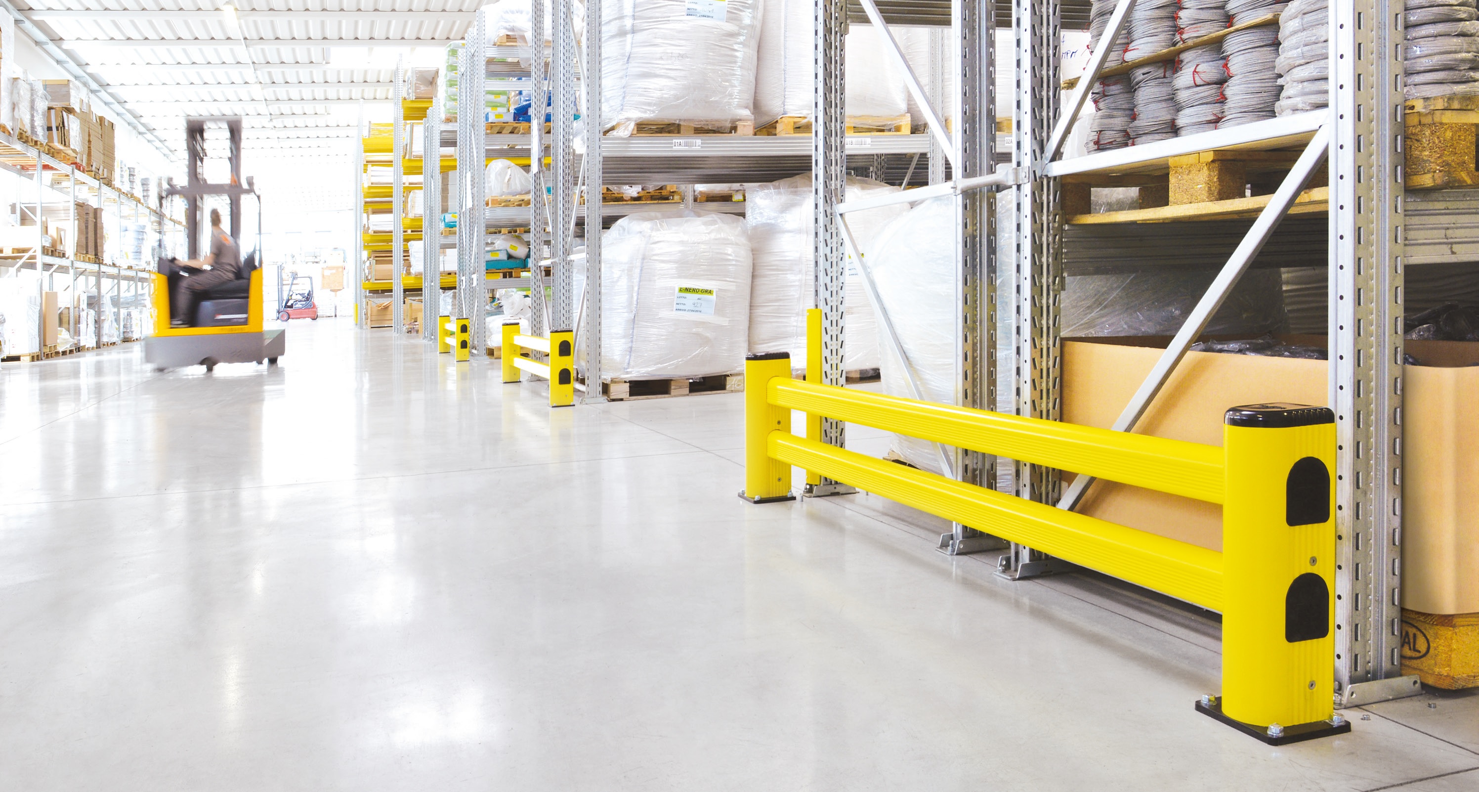 Védelmet nyújtanak különböző teherbírású mozgó járművek, például raklapemelő targoncák és targoncák ütközése ellen.